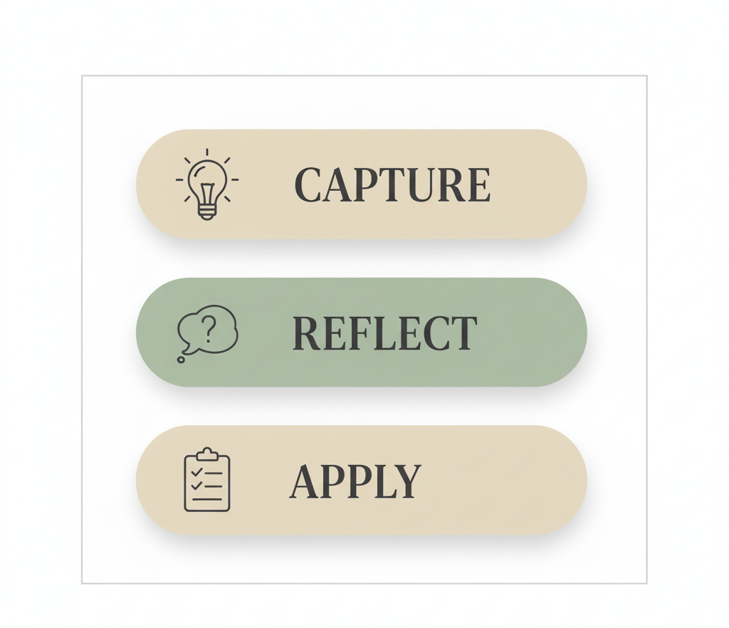 Key takeaway: Learning systems stick when they combine reflection and application — not just input.